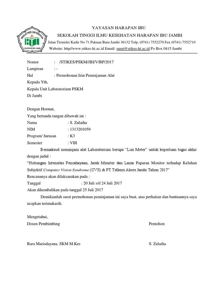 Surat Peminjaman Peralatan Pdf