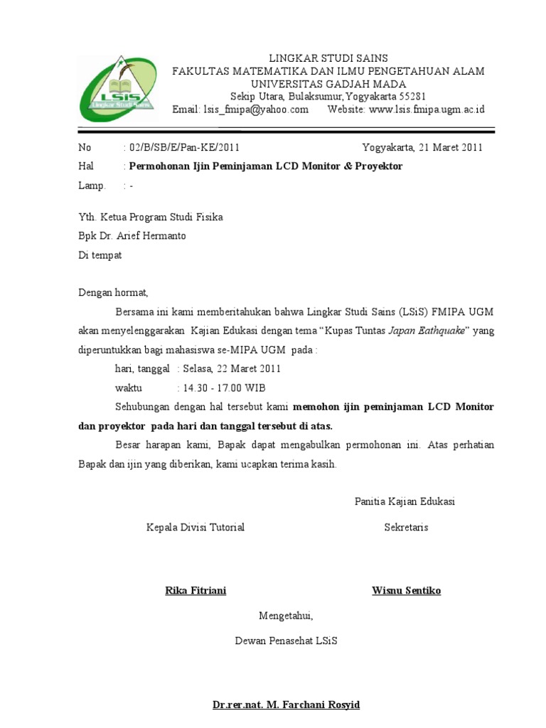 Doc Contoh Surat Peminjaman Tempat Dan Barang Ihtiandiko Wicaksono Academia Edu