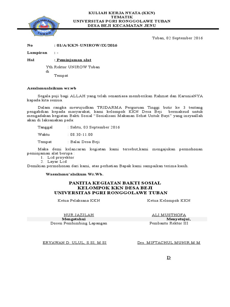 Surat Peminjaman Alat Untuk Kegiatan Pdf